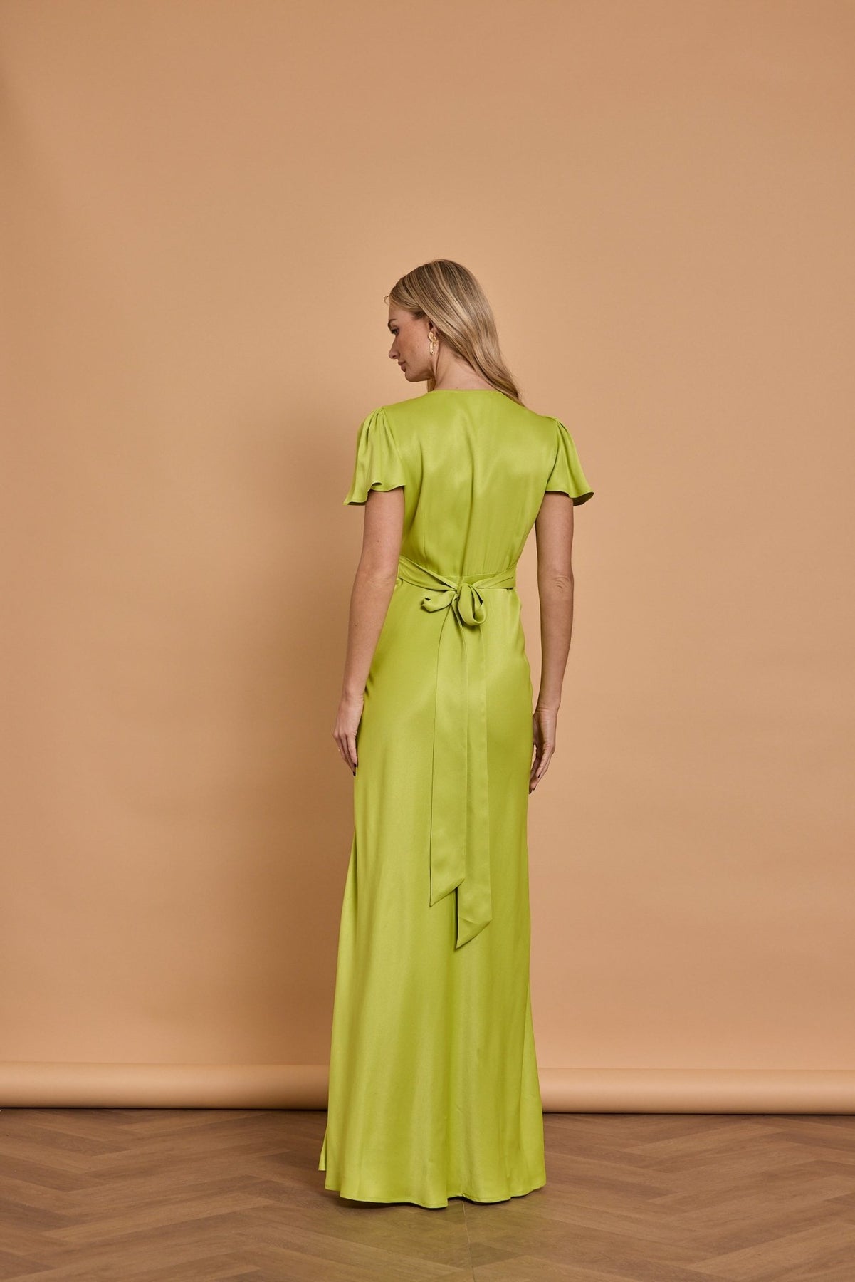 Chelsea Satin V Neck Bridesmaid Dress - Lime Green