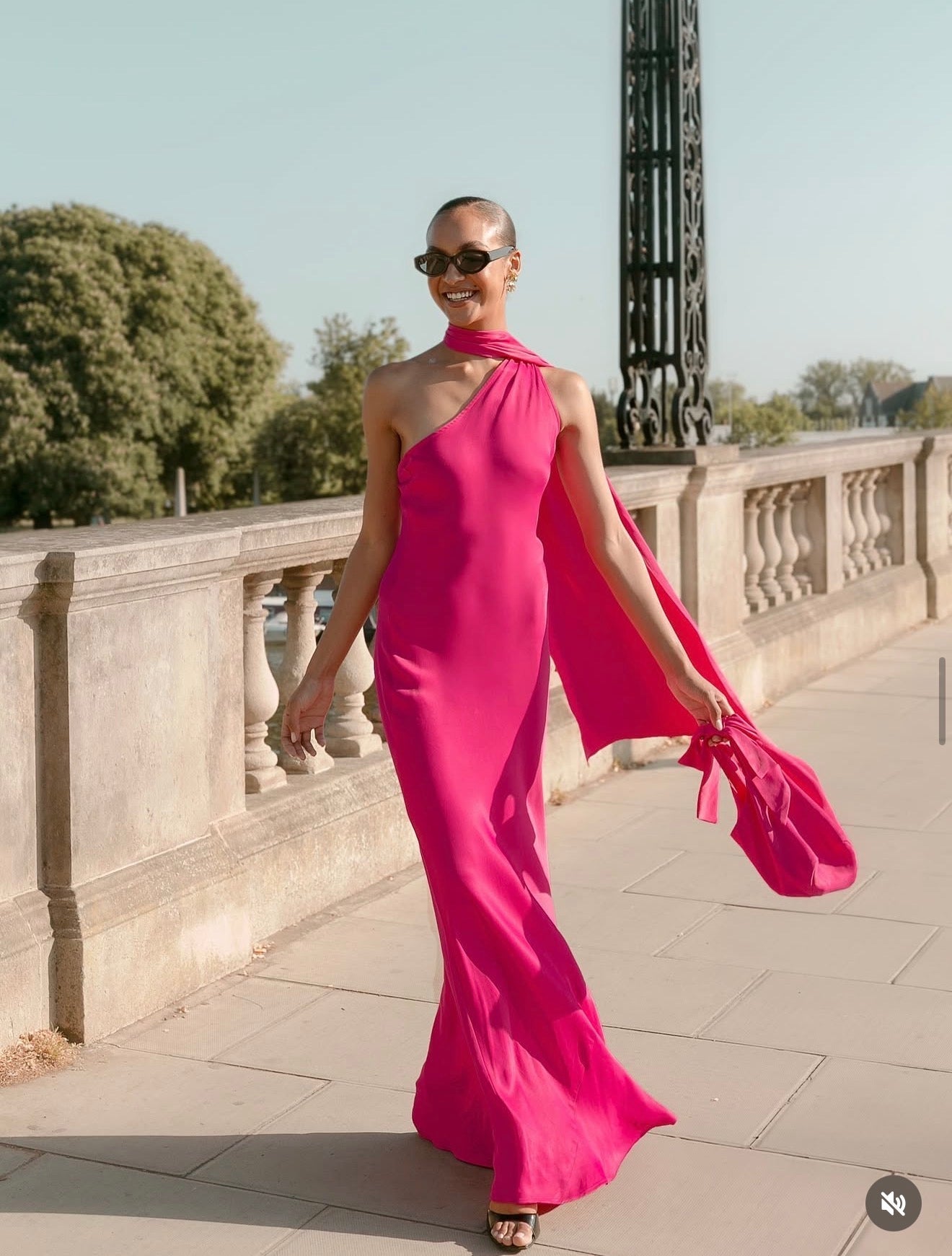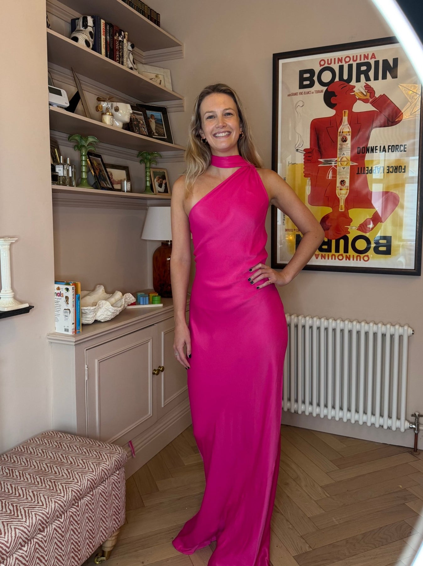 Cressida Satin Asymmetric Dress - Hot Pink - Maids to Measure