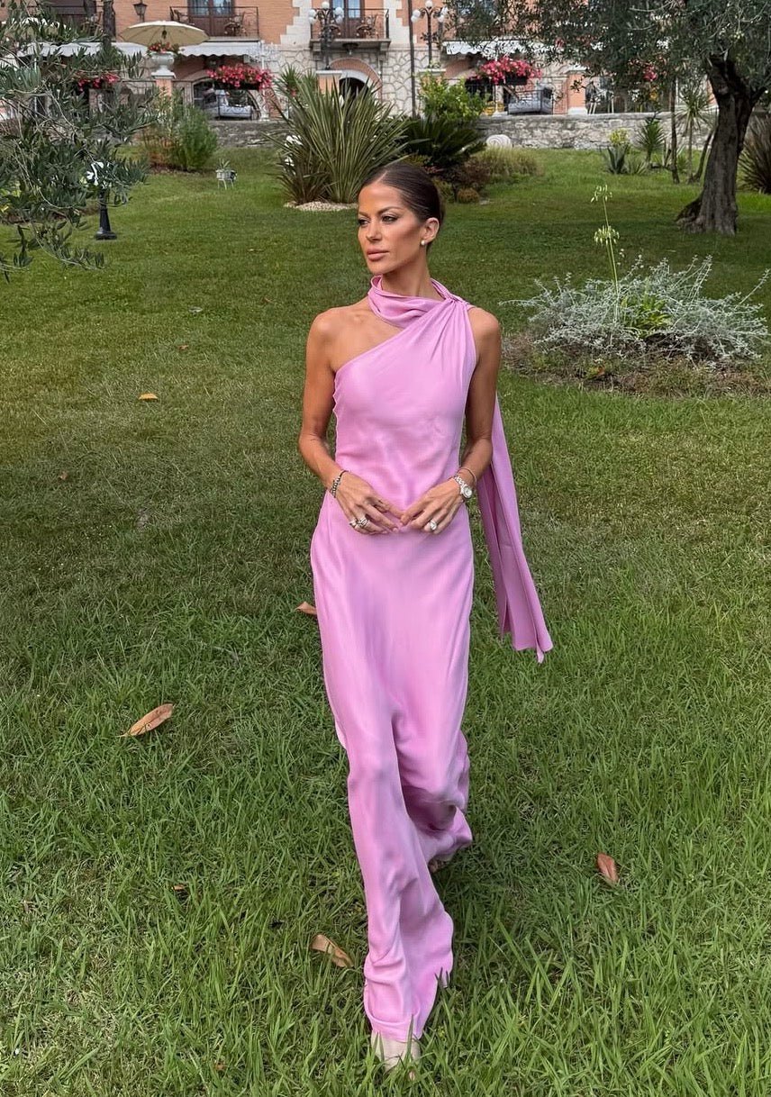 Cressida Satin Asymmetric Dress - Orchid Pink
