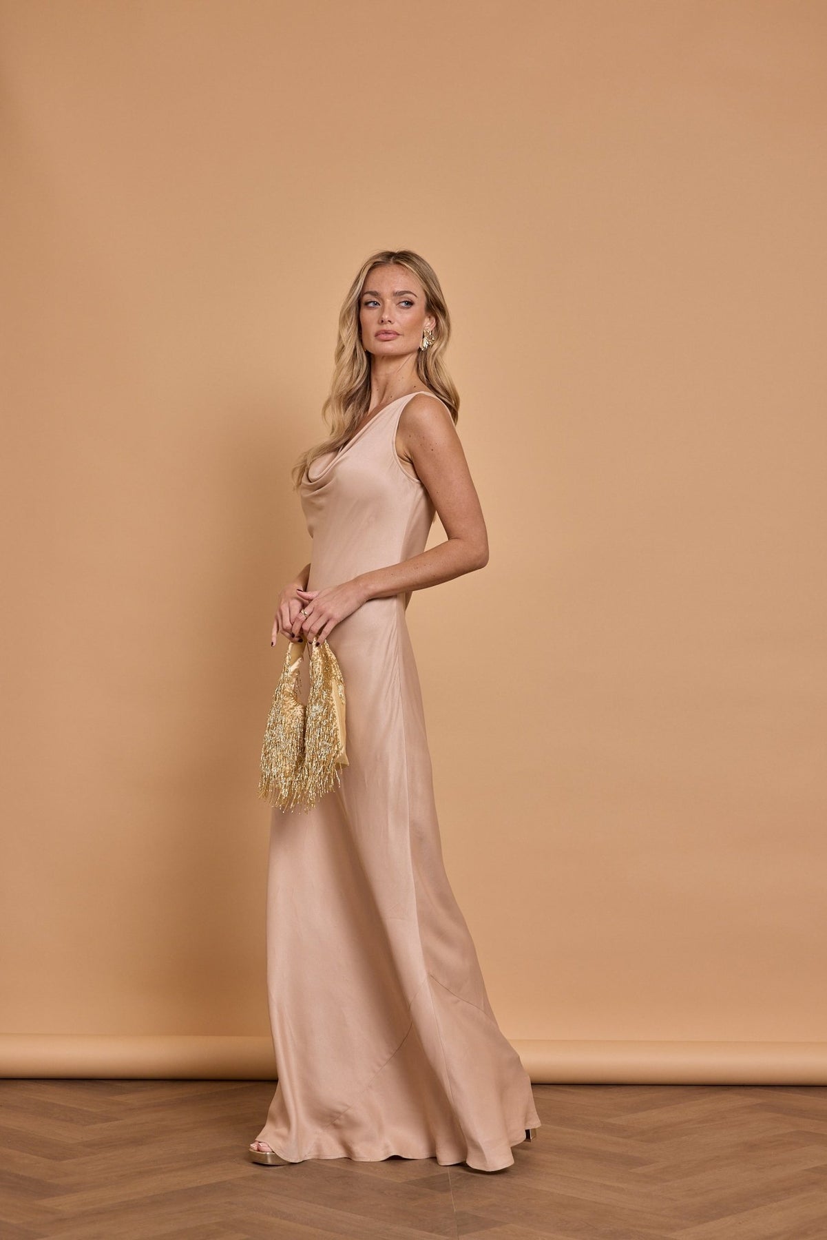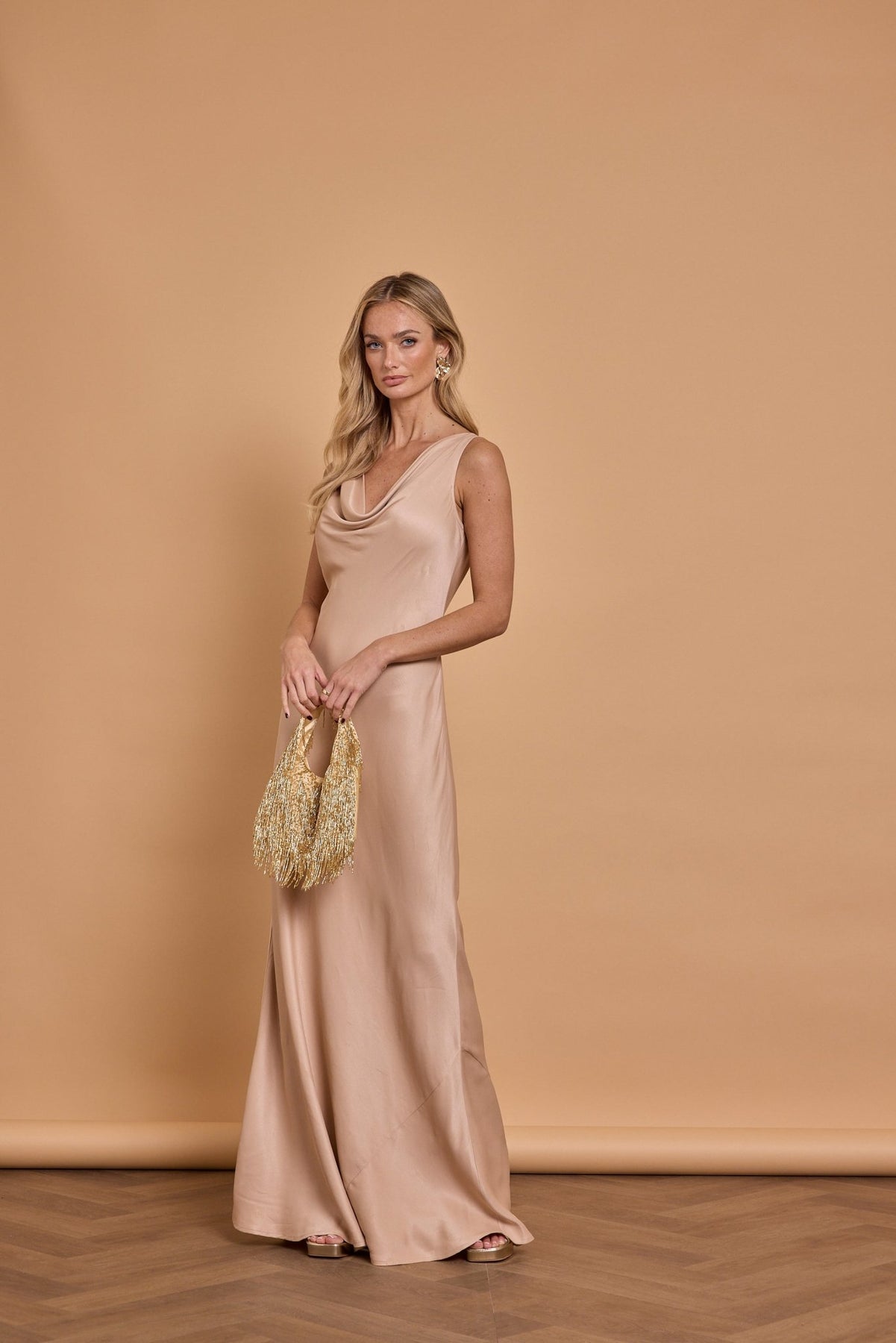Pandy Satin Cowl Bridesmaid Dress - Mocha